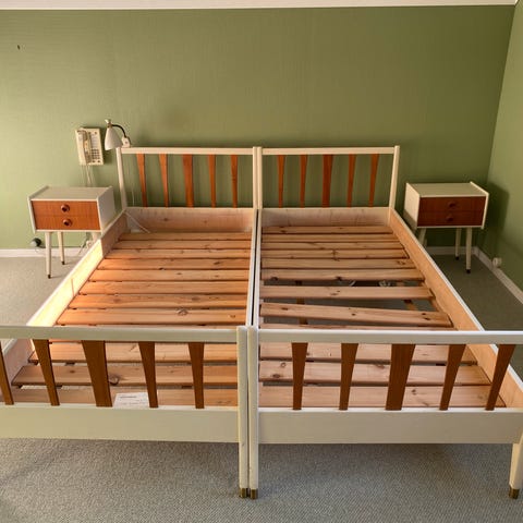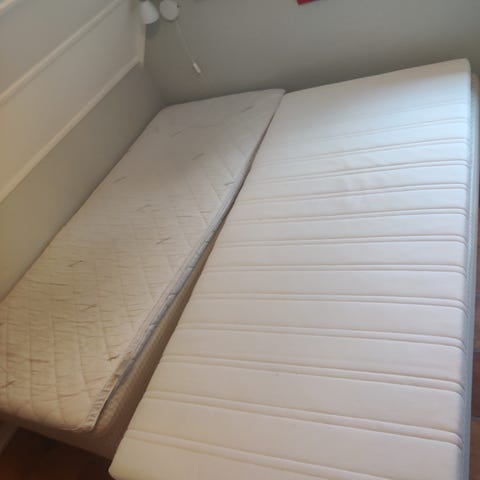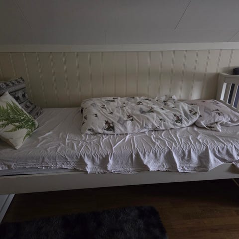 Gammel seng med oppbevaringsplass selges pga flytting