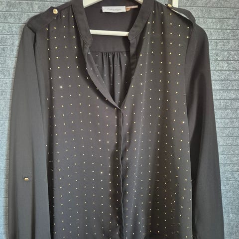 Selger en stilren og tidløs bluse fra Calvin Klein i en nydelig turkisfarge.