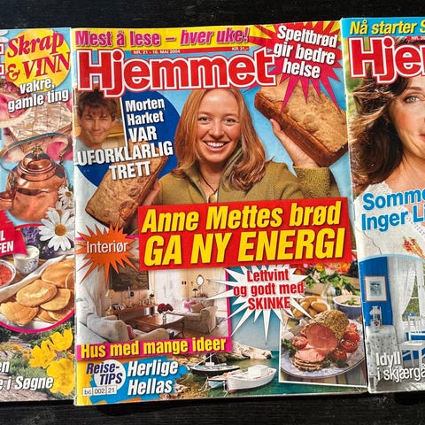 Hjemmet magasin med flere utgaver, inkludert forskjellige titler og omslagsbilder. Magasinene er i trykt format og inneholder variert innhold som kryssord, oppskrifter, psykologitips og sommerrelaterte artikler. Egnet for lesere som ønsker underholdning og informasjon innen livsstil og helse. Pris er for alle. Se bilder for nr og årstall.
