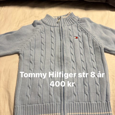 Blå barnejakke strikket unisex størrelse 128