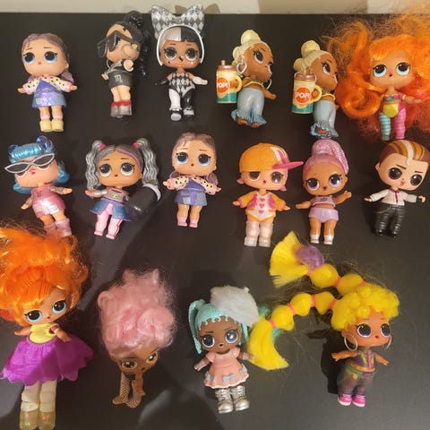 Selger L.O.L.-dukker med tilbehør og bil. Alt er brukt, men i grei stand.
