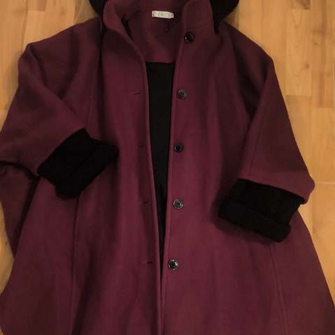 Ubrukt lysebrun kåpe fra CLE i str large med flotte detaljer. Lappen er falt av, men den er ikke brukt. Kjøpt ny for kr 2450. 40 prosent ull. Kan hentes på Klosteret på Nordnes eller sendes.