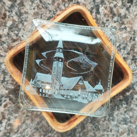 Stilig retro Stella Polaris-askebeger, designet av Nanny Still for det finske selskapet Riihimäen Lasi. Serien ble produsert fra 1967 til 1975.