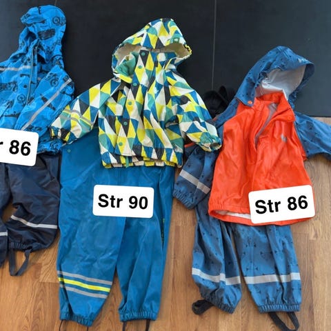 Reflex regnsett i størrelse 86. Pent brukt, hel og fin. Bortsatt, at den fikk på seg litt maling. Se bilder.