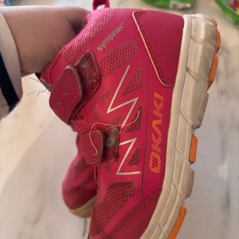Godt brukt Okaki sko til barn i størrelse 29 og farge svart/oransje. Sko med Sympatex. Synlige bruksmerker men fortsatt mye bruk igjen.