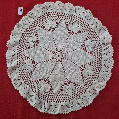 Vintage rosa heklet blonde dekorativ pyntepute med rød burgunderrød innsats.