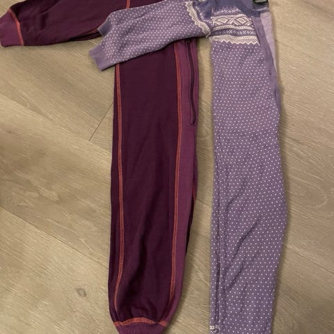 Godt brukte, noen hull i det ytterste stoffet på knærne på den hvite. Nupper, ellers i grei stand.