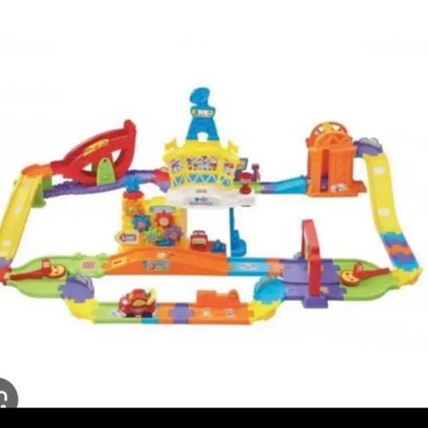 Vtech toot toot bilbaner inkludert 8 biler selges videre da det ikke brukes lenger. Plastbokser medfølger ikke.