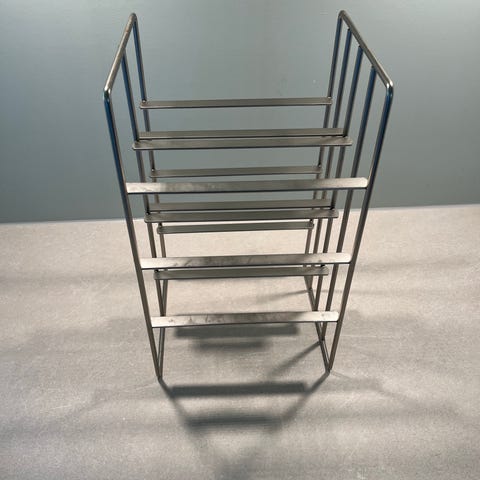Gram vinlagringsskap med en bredde på 46 cm, front i rustfritt stål og glassdør. Innvendig har skapet flere trehyller for oppbevaring av vinflasker. Passer for kjøkken eller oppbevaringsrom.