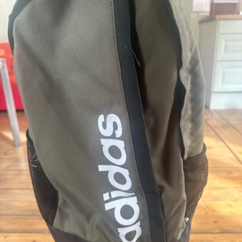 Adidas ryggsekk laget av stoffmateriale, designet for unisex bruk. Ryggsekken har justerbare skulderstropper og flere lommer for oppbevaring, inkludert en frontlomme med glidelås og sidelommer.