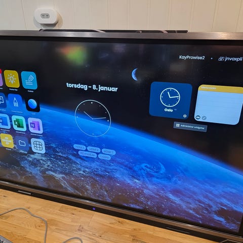 Skjermen er hel og pen og fungerer som den skal. selges med fjernkontroll, to penner til bruk på skjermen og 1 SI01 wifi-modul.