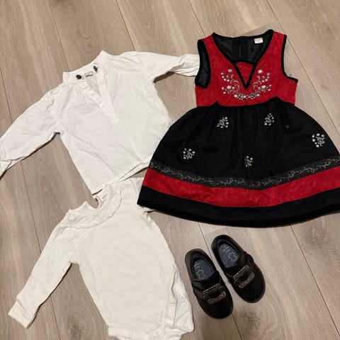 Festdrakt / bunad str. 74 med skjorte, kyse og sko (str. 24)