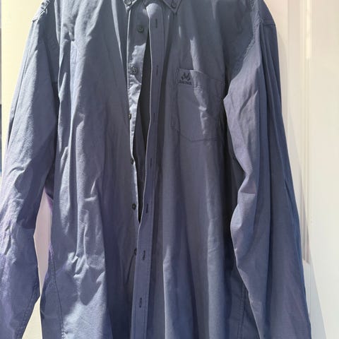 Moods of Norway skjorte i svart farge, størrelse XXL. Laget av 100 % bomull. Skjorten har knappelukking og broderte logoer foran og bak. Egnet for herrebruk.