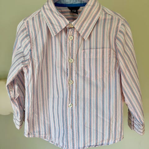 En skjorte fra Gap i 100 prosent bomull i størrelse 3 år (100 cm) selges. Den kan fint brukes ved finere anledninger, som for eksempel julefeiring, og er kun brukt én gang i noen timer. Den har ingen skader, bruksmerker eller slitasje, og er fortsatt like fin som da den var ny.