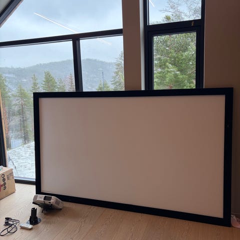 Lerretet er av merket « DreamScreen « og lerretet er litt grå , for bedre bilde !