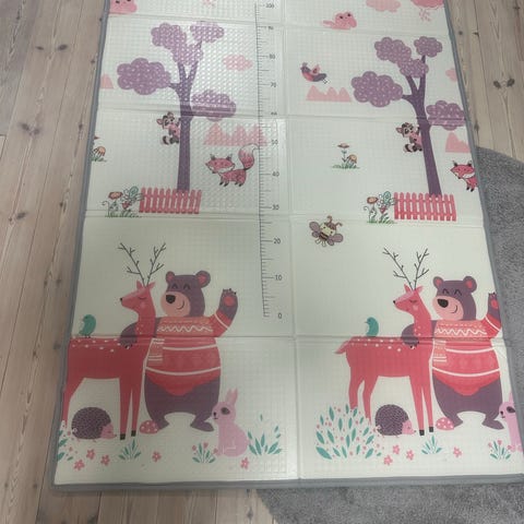 Heklet babyteppe i bomull, rakk aldri å brukes. Fremstår deretter. Selges for 300,- kroner.