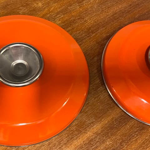 Disse formene har aldri vært i bruk i stekeovn , men har noen riper etter flytting i skap.