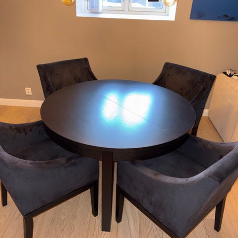 Spisebord Ø120 med 40 cm innebygd tilleggsplate.