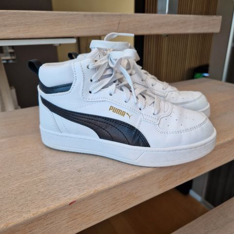 Puma barn sko i størrelse 37, designet for gutter. Skoene har en svart og hvit fargekombinasjon og er laget med SoftFoam+ innersåle for komfort. Skoene er egnet for hverdagsbruk og gir støtte og demping for barnets føtter. Ny pris 700 kr 2024