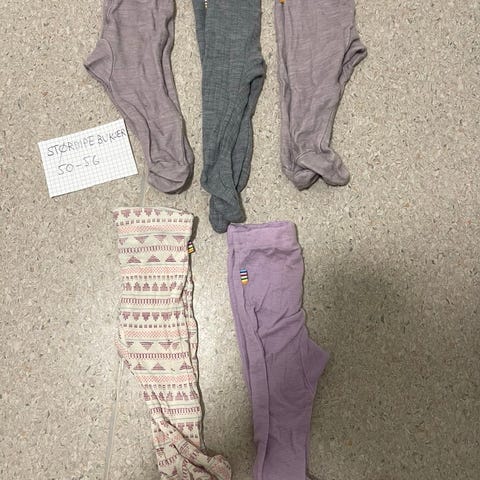 Fire stk ull strømpebukser med antiskli (alle i strl 70). Selges samlet.