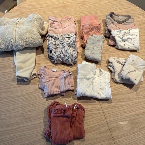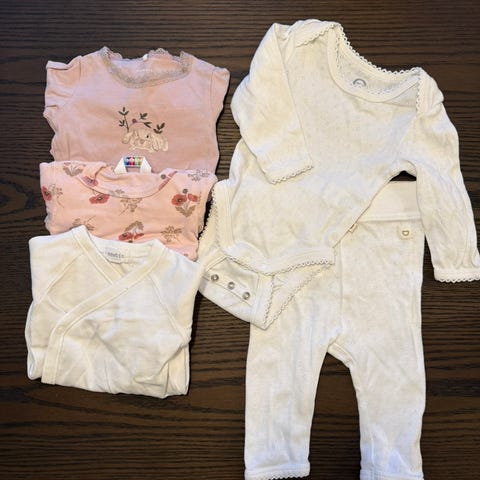 Selger en liten klespakke med to fine sett til baby størrelse 56.