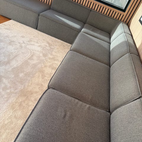Den er utrolig godt holdt. 3 år og spesial foring i puter og veldig bra stopping i puter. Spesielt slitesterkt trekk. Ikke dyr/røyk. Må hentes Lillesand. Pris kan diskuteres