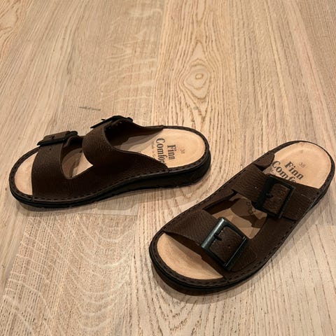 Dette er et par helt nye Finn Comfort Pantolette-sandaler i skinn str 5 (38).