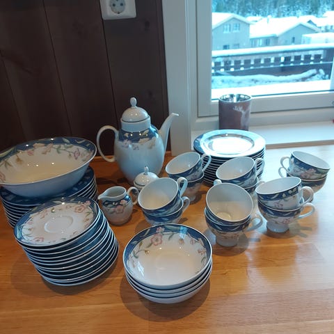 Som ny Eschenbach Bavaria Germany porselen teservise. Kjempe fine koppene. Delikat grå mønster av rosablomst. Denne servicen skal jeg pakke ekstra godt