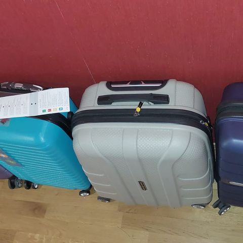 Selger 2 stk. røde kofferter. En stor og en middels i hard plast. Begge har kodelås og hjul. Stor koffert kr 200 og middels koffert kr 150. Må hentes hos meg.
