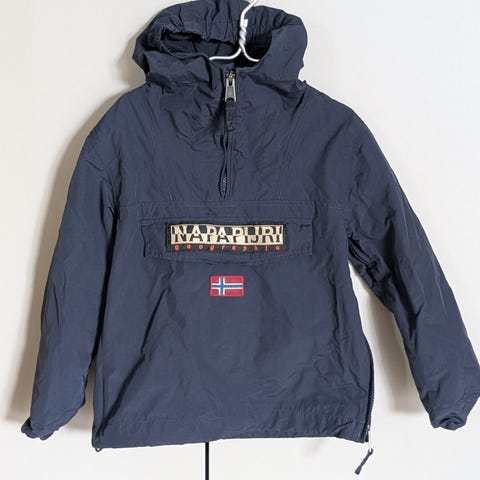 Veldig pen anorakk med fór av fleece. Str 8 men litt liten i størrelsen. Brukt fra 6-7 år