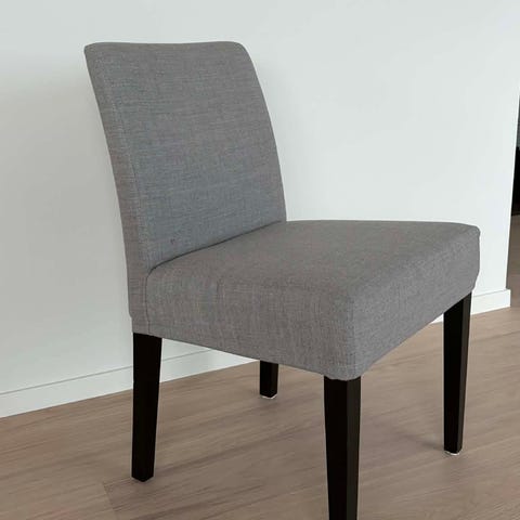 Fire fine spisestoler fra Slettvoll i lyst beige stoff med understell i eik selges. Stolene har avtakbart trekk som kan vaskes. Selges svært billig.