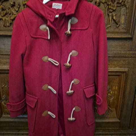Ca 80 cm langt . Silke stoff på baksiden , med hempe