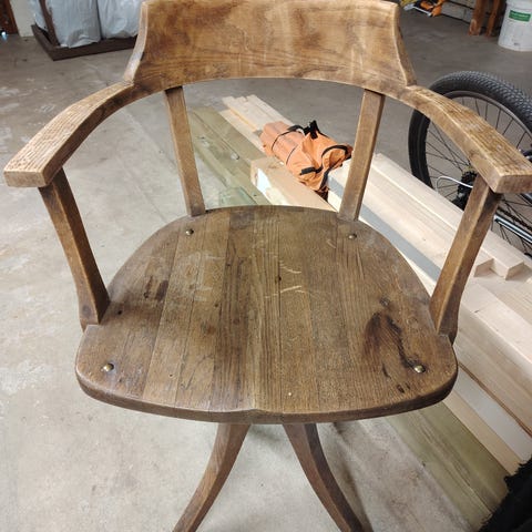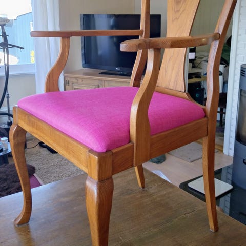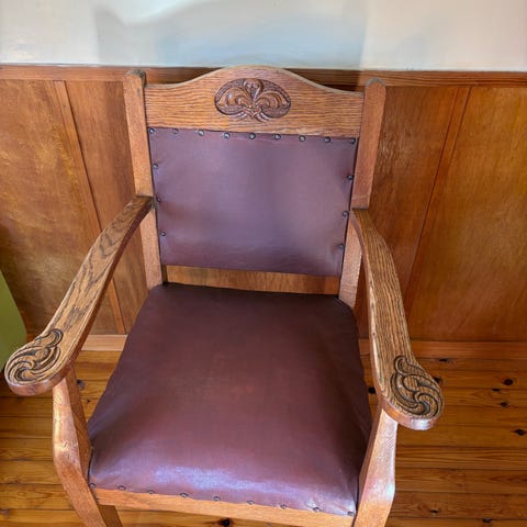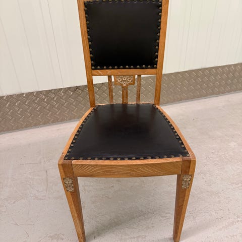 Rustikk stil antikk eikestol. Nytt trekk i ekte skinn.