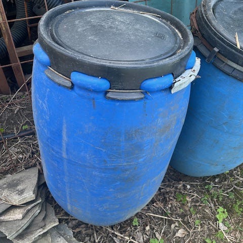 Ha vann i til blomster/vaske hender/vann i naustet.