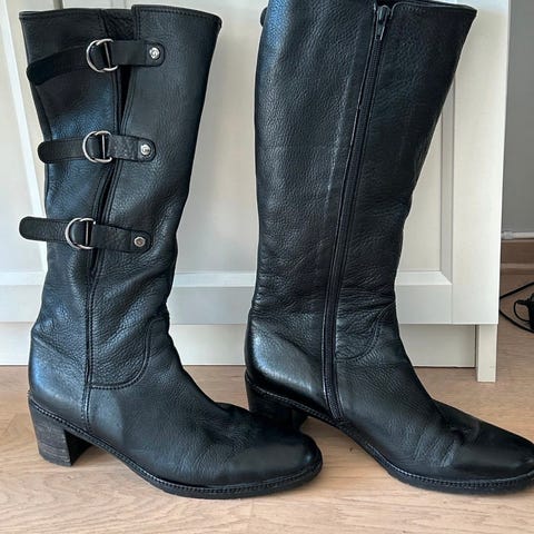 Skoene er hele, men har blitt brukt på maleoppdrag og derfor flekkete under på sålene. Noen flekker ellers også. Se på bildene.