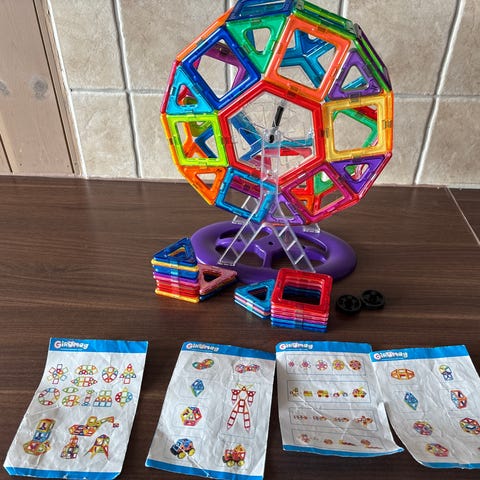 Deler til Giromag (ikke Geomag) Magnet byggesett. Alle deler vises samlet på første bildet.