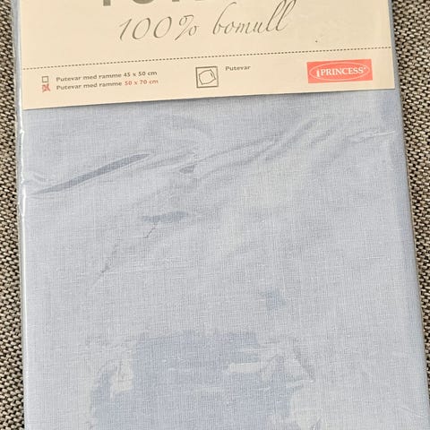 Ubrukt sengesett i størrelse 140x220 og 50x70. Laget av egyptisk bomull, farge er Ocean breeze. Nypris er ca 1700, selges for 600. Kan sende med postnord til 69kr :)