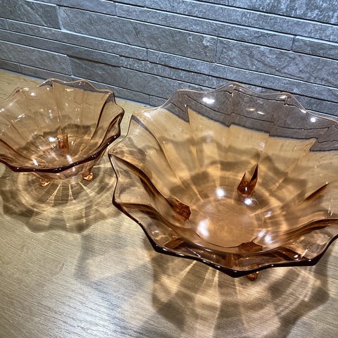 Stor «Wave» skål, designet av Maud Gjeruldsen Bugge i 2009 - Nypris for skåla var kr 1600,- (bekreftet av Hadeland Glassverk).