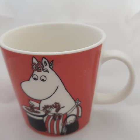 Selger mummikoppen «Mummitrollet på isen» for 465 kroner. Koppen er brukt og har noen små merker (se bilder). Utgått kopp med kronestempel.
