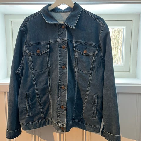 Superfin denimjakke fra GAP, str M. Myk i stoffet, fin lys vask og oversized/løs passform som gjør at man har god plass til en tykkere genser under når det blir kjøligere ute 😍