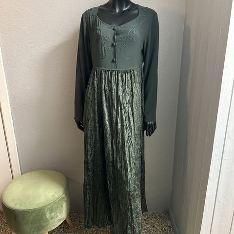 Selger denne da den er for lang for meg. Grønn, lang festkveld i str 38, med nydelige detaljer🌿 Obs! Mangler en knapp i ryggen, se bilder.