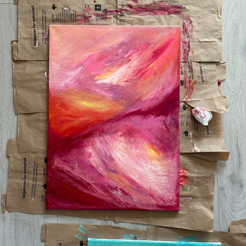 Moderne kunstmaleri som viser et abstrakt portrett i dempede farger med innslag av grønt og gult. Maleriet har en teksturert overflate og en sammensatt komposisjon som gir dybde og uttrykk. Passer som dekorasjon i stue, kontor eller galleri. Malt på plate med integrert oppheng. Mål: bredde 70 cm, høyde 100 cm. Må hentes.