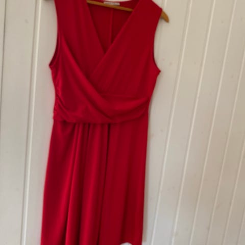 Anna Field Festkjole i størrelse L, rød farge. Kjolen er laget av blonder med et innerfôr i matchende rødt stoff. Den har korte ermer og en feminin passform, egnet for formelle og uformelle anledninger.