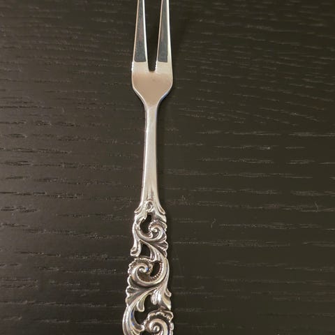 1 stk. Satt på status som "Pent brukt" pga ser ut som litt slitt på baksiden, men dette skyldes at den har ligget sammen med andre bestikk. Gaffelen er ikke brukt og er egentlig helt ny.