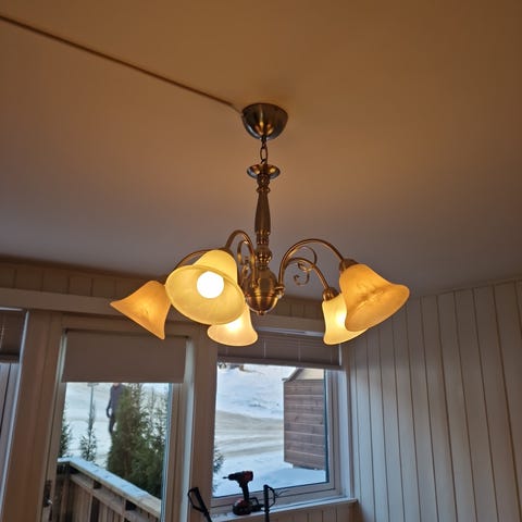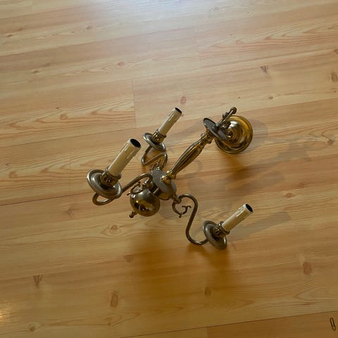Femarmet messing taklampe + 2 vegglamper. Patinert messing