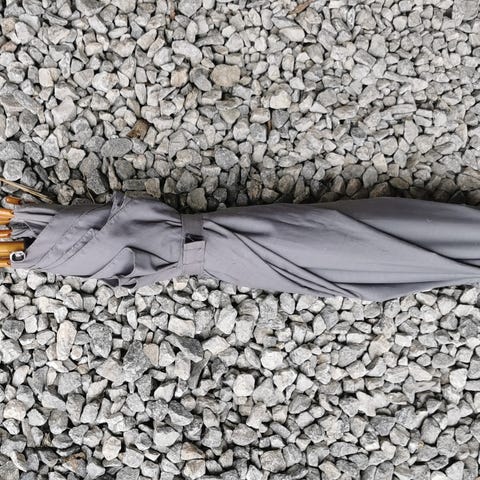 Gammel paraply med treskaft.