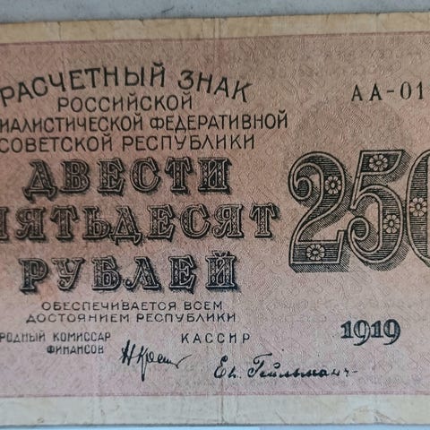 Gamle russiske sedler 1898 til 1960-tallet såvidt jeg kan forstå