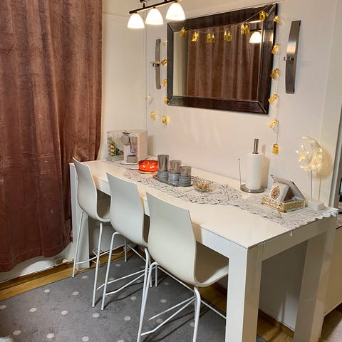 Meget pent spisebord, 10 stoler/lysekrone m.m.