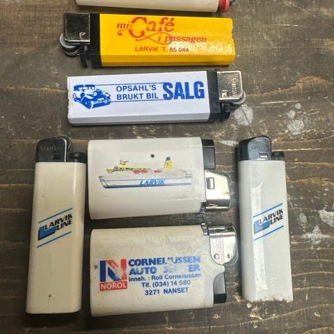 Vintage lightere med gammel reklame.