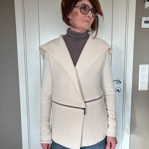 Unik designerjakke fra Elevenparis. Ullstruktur som ser håndlaget ut og gir skikkelig statement-look. Veldig varm og helt uten kløe. Lett og behagelig på. Dette er en jakke du ikke finner igjen i butikk, og den får alltid kommentarer.